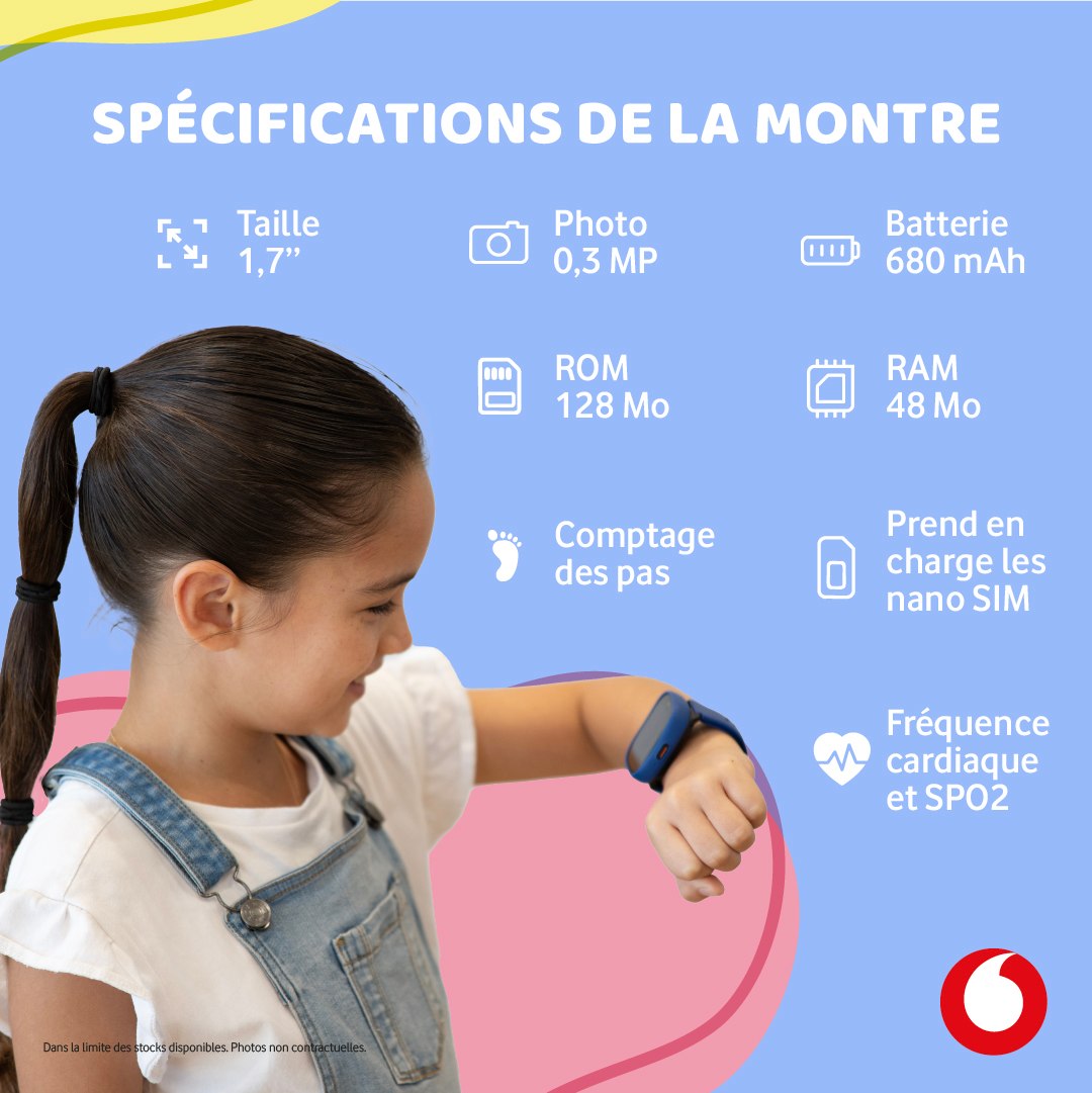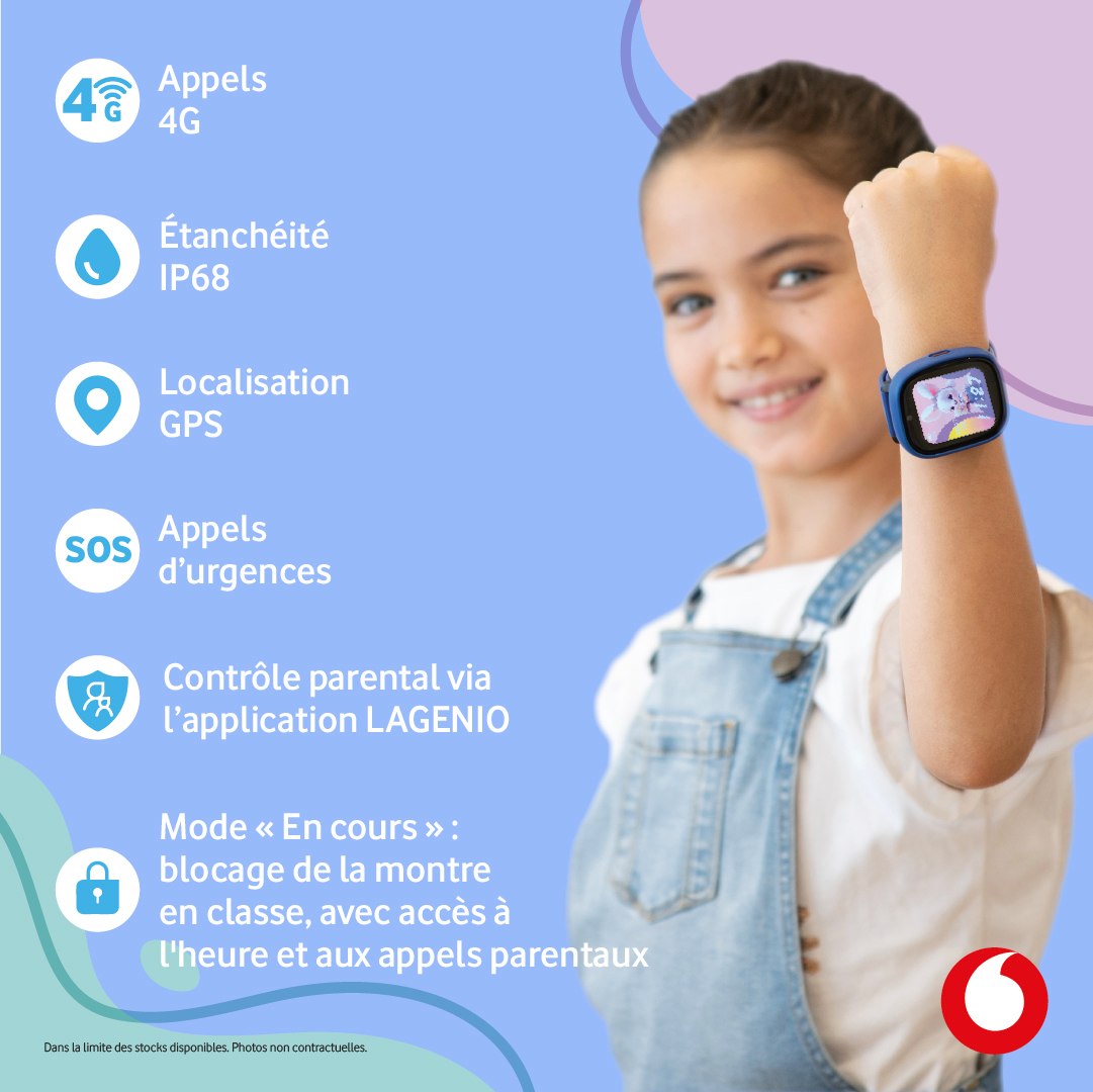 Pour que la Lagenio K3 offre tous ses bénéfices, elle a besoin d'un réseau 4G fiable. C'est là que Vodafone Polynésie entre en jeu. La montre est compatible avec nos offres mobiles, que ce soit un forfait avec peu de données ou une simple carte prépayée. Sa faible consommation de données en fait une solution économique et parfaitement adaptée aux besoins des familles polynésiennes.